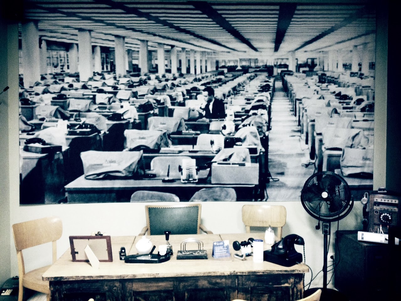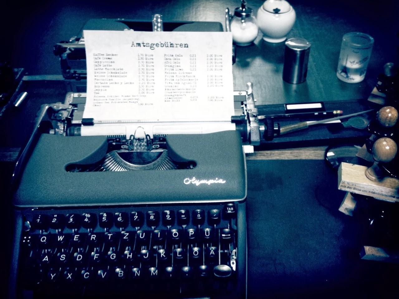 Übrigens gibt´s dort auch W-Lan. Ihr könntet also Euren oberstylishen modernen Laptop direkt auf ein altes Büromöbel neben eine historische Schreibmaschine platzieren und losarbeiten. Hat doch was, oder? Und wenn Ihr mal einen Besprechungsraum für sechs bis acht Personen braucht, habt Ihr im „Amt“ auch Glück. Dort gibt es einen kleinen Nebenraum, der gemietet werden kann.