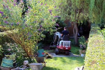 Das Wetter meinte es übrigens in den ingesamt drei Wochen, die unsere Umgestaltung dauerte, nicht besonders gut. Entweder war es brütend heiß oder es regnete in Strömen. Umso beeindruckter war ich von der stoischen Gelassenheit, mit der Marcel, Carla & Co. bei jeder Witterung weitermachten. Ich versuchte, es abwechselnd mit Eis, Kuchen, Keksen und Kaffee wieder gut zu machen.