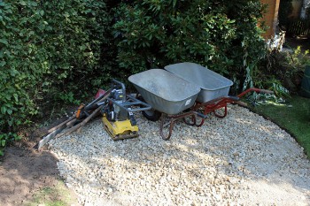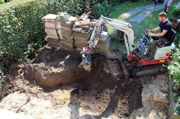 Und dann ging´s richtig rund. Mit Minibaggern, diversen Baumaterialien und Gerätschaften rückte unser Gartenteam an. Und man glaubt ja gar nicht, wie schnell plötzlich Arbeiten erledigt sind, für die man ohne das passende Equipment mühsam lange braucht.